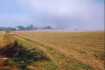 Nous quittons la route pour suivre un chemin de terre au milieu de champs sur